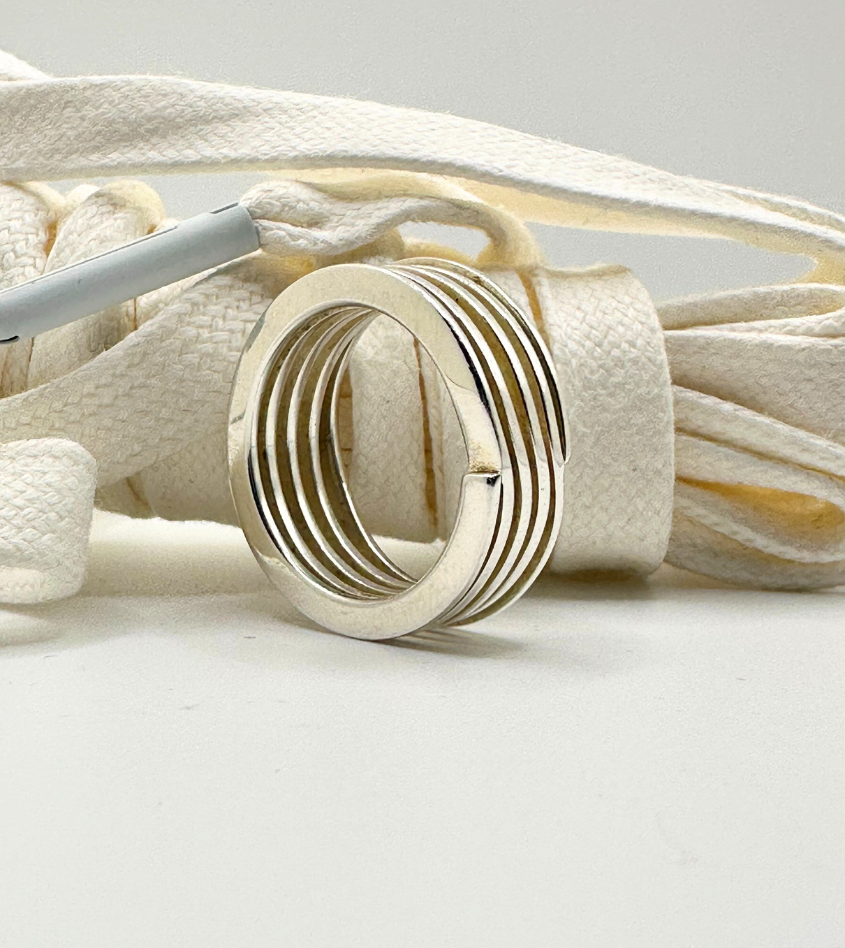 Crafted with precision and a sleek, polished finish, the piece captures the perfect balance between raw, industrial elements and refined sophistication. Ideal for those who crave something unique, this ring becomes a statement of strength, individuality, and fearless fashion.