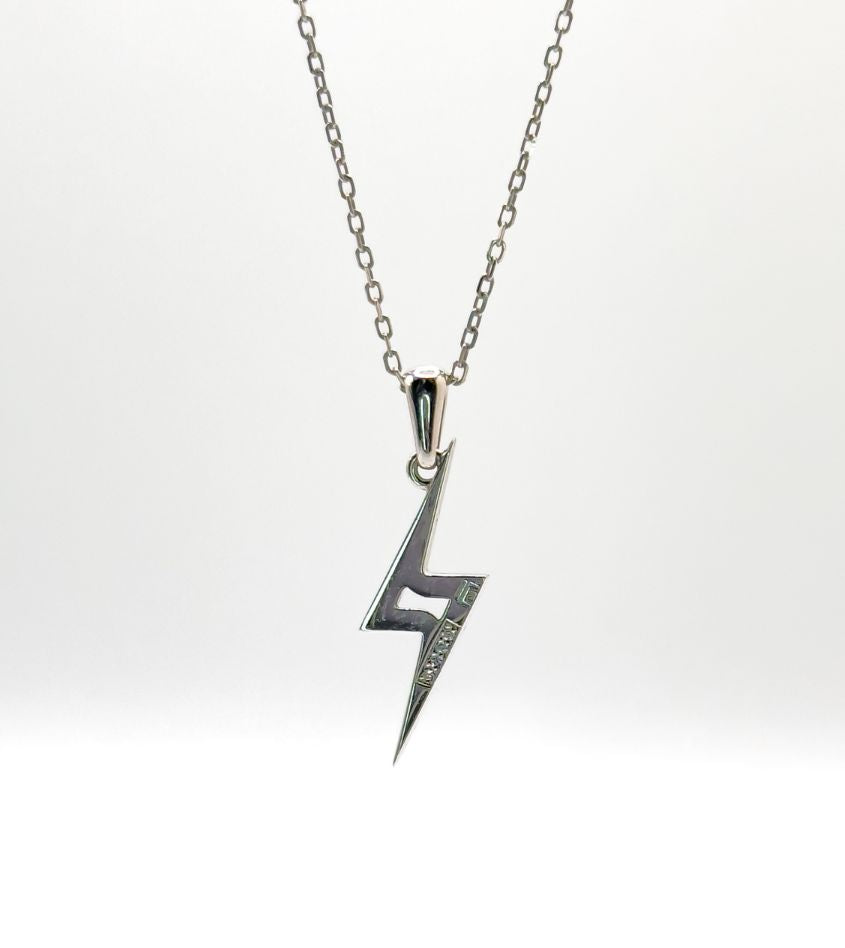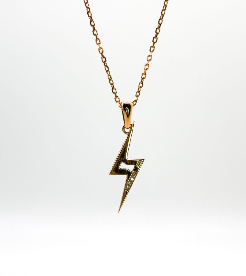 Striking and undeniably chic, this lightning bolt pendant is a masterpiece of modern luxury. Crafted in luminous 14k gold this pendant captures the raw energy of a storm with a sleek, high-fashion edge.